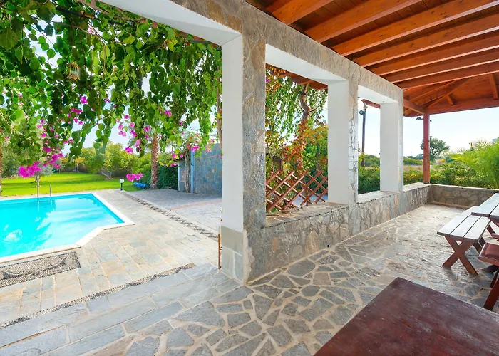 Há cozinha com microondas, chaleira elétrica e frigorífico grande, bem como comodidades para refeições no quarto, tais como máquinas de café/chá. O aeroporto mais próximo da propriedade é Internacional de Rhodes, localizado a 70 km. A acomodação também inclui banheira quente perto de piscina privada. As comodidades recreativas incluem solário, área para piquenique e grelha para churrasco, bem como serviços de casamento.